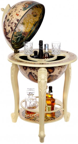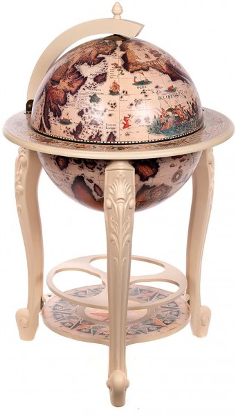 Оригинальный глобус бар на трёх ножках украшенных лепниной отлично впишется в благородный классический интерьер, прекрасное решение как для кабинета, так и для жилой комнаты.