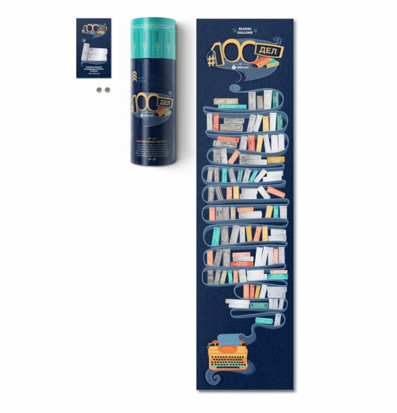 Читай книги, отмечай их на постере, удаляя скретч-слой, — и ты увидишь, как #100 ДЕЛ BOOKS edition окрасится в яркие цвета, а твоя жизнь станет интереснее и разнообразнее.