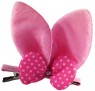 Забавная заколка в розовом цвете выполнена в форме ушек с бантиком и камушком по центру. Размер-7см