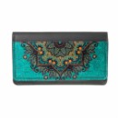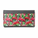 Конструкция: застежка - кнопка, внутри 2 отдела для купюр, отдел для чеков/визиток/прочего, отдел на молнии для мелочи, 8 слотов для карточек, снаружи отделение на молнии.