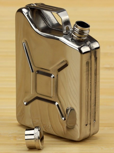 Оригинальная фляга в виде канистры .Не такой огромной, и даже карманной. Но все равно - это смотрится ну очень забавно - разлив "горючего" по рюмкам из "канистры"