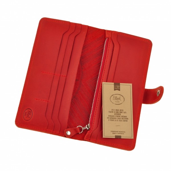 Функциональная составляющая продумана до мелочей: два основных отделения, в которые купюры ложатся в полный рост, карман для монет на молнии, девять отделений для кредитных и дисконтных карточек. Кроме того, есть два отделения для мини-карт (брелоков). Портмоне закрывается на хлястик с металлической кнопкой – удобно и надежно.