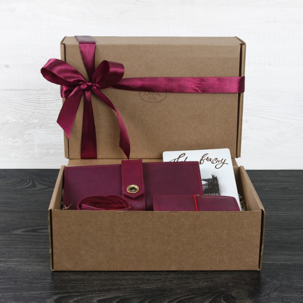 - портмоне, кард-кейс, браслет, открытка, крафтовая упаковка.