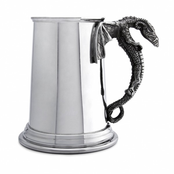 Пивная кружка из олова от компании English Pewter. Объем 0,57 литра, вес 0,8 килограмма. Все декоративные элементы танкарда выполнены вручную. Страна производитель — Англия. На корпус нанесены клейма подтверждающие оригинальность изделия. Комплект поставки включает подарочную коробку с фирменным логотипом