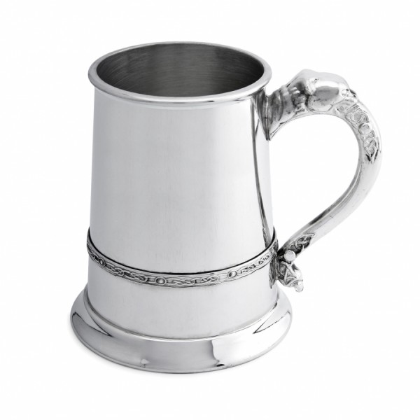 Пивная кружка из олова украшена ободом с чеканкой. Ручка декорирована элементом в виде головы львицы. Подходит для нанесения гравировки. Материал изделия — пъютер. Объём 570 мл. Изготовлено в Великобритании компанией English Pewter. Кружка поставляется в картонной коробке с фирменным логотипом компании производителя — English Pewter. Ручная работа.