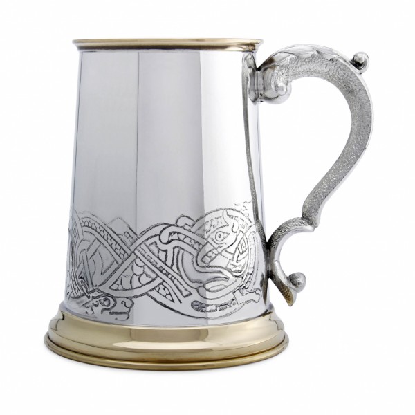 Компания English Pewter по праву носит звание одного из лидеров производства товаров из сплава олова. Пивная кружка EP151 — это пример отличной работы команды специалистов высокого уровня. Классическая форма корпуса оригинально дополнена латунными вставками в основании и горловине. На нижнюю половину корпуса нанесена гравировка в кельтском стиле. Григорианская ручка завершает образ.