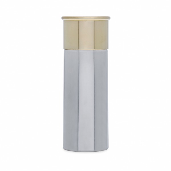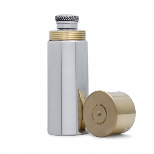 Представленная модель изготовлена в форме патрона для гладкоствольного оружия. Купить флягу на подарок в таком смелом дизайне можно не только для любителей охоты, но для мужчин, которые увлечены оружейной тематикой. Оловянная фляга поставляется в двух размерах – 180 или 112 мл. Крышка изделия выполнена из латуни, ее также можно использовать в качестве стопки. Все изделия от британской компании English Pewter отличаются не только эксклюзивным дизайном, но и своей долговечностью. А это значит, что оловянную флягу нельзя назвать одноразовым изделием на пару месяцев: сосуд сохраняет свой первоначальный вид долгие годы, он не темнеет и не ржавеет. Перед отправкой клиенту изделие помещается в чехол для фляги и фирменную коробку.