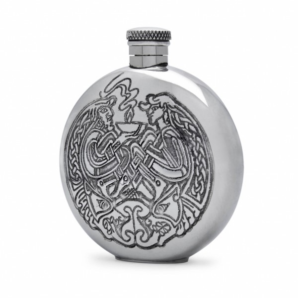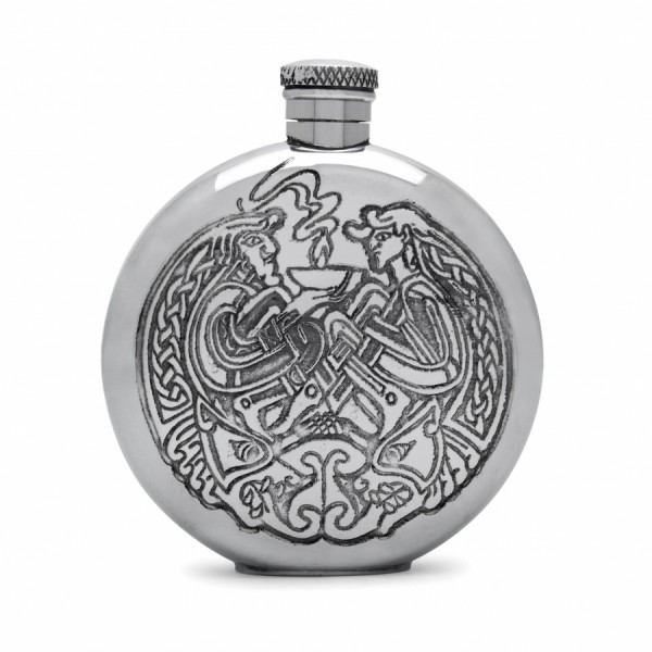 Круглая оловянная фляга с узором идеально подходит для настоящих ценителей виски или других крепких напитков. Эта фляжка имеет округлый дизайн, она компактна, а кельтская тематика рисунка в центральной части фляги делает её единственной в своём роде. Гравировка будет безупречно смотреться на тыльной поверхности этой фляги, что сделает Ваш подарок поистине уникальным и личным. Изделия из оловянного сплава не тускнеют со временем, поэтому являются идеальным памятным подарком для любого случая. Фляга упакована в чёрный бархатный мешочек и в комплекте с лейкой, а также презентационной коробкой бежево-чёрной цветовой гаммы.