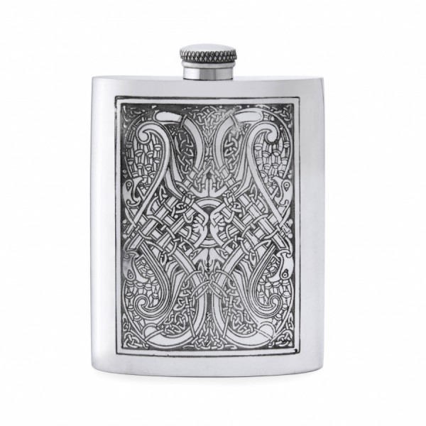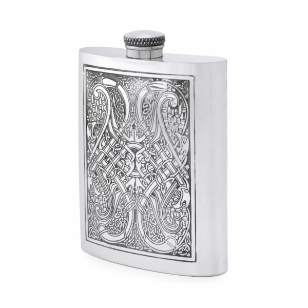 6-унцовая фляга English Pewter с кельтским орнаментом. Объем 180 мл. Размер 12×9 см. Произведено в Великобритании. Изготовлена из высококачественного сплава пищевого олова.