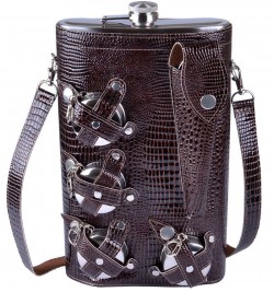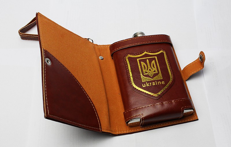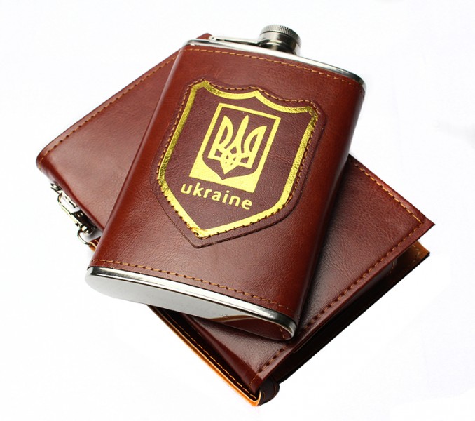 Фляга из пищевой нержавеющей стали в кожаной барсетке Украина.