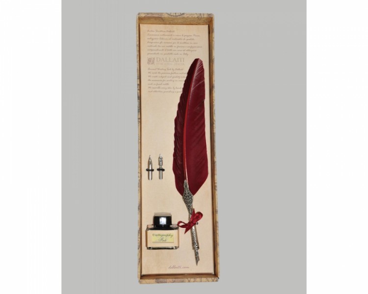 Перо упаковано в подарочный футляр, который фиксирует перо узкой атласной ленточкой, точно подходящей в тон.