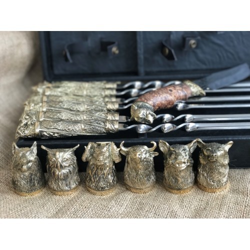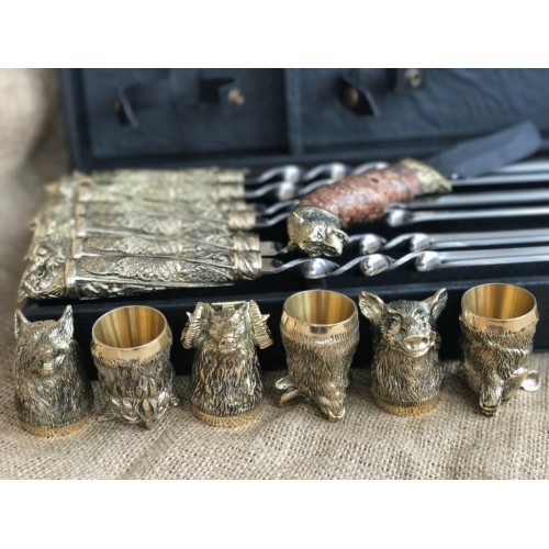 VIP-Набор шампуров Дикие звери, нож + 6 рюмок.