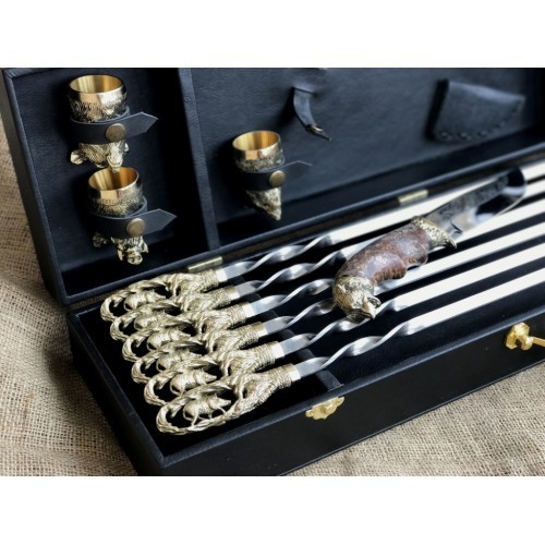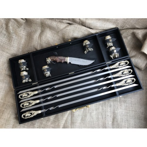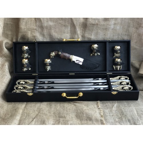 VIP-Набор шампуров Гранд, нож + 6 рюмок.