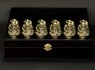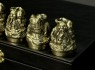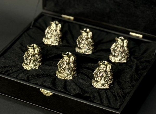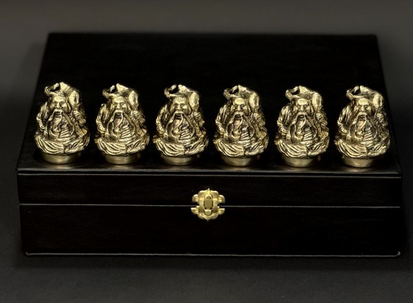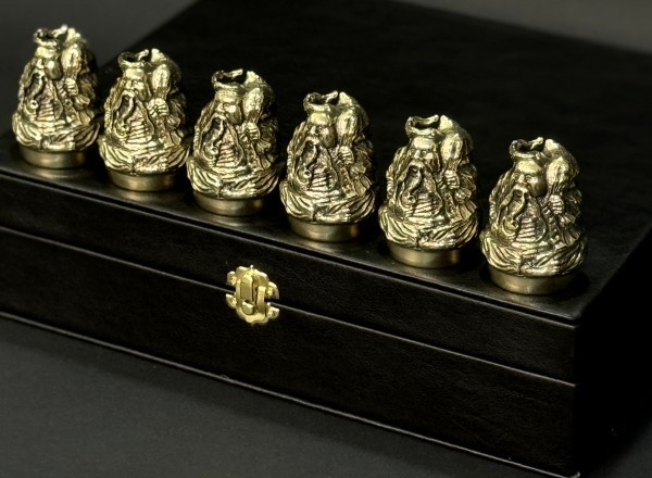 1. Рюмка Козак 6 шт: художественное литье из бронзы, внутри покрытые пищевым булатом. Высота 70 мм, ширина 40 мм, объем 30 мл, вес 220 грамм.