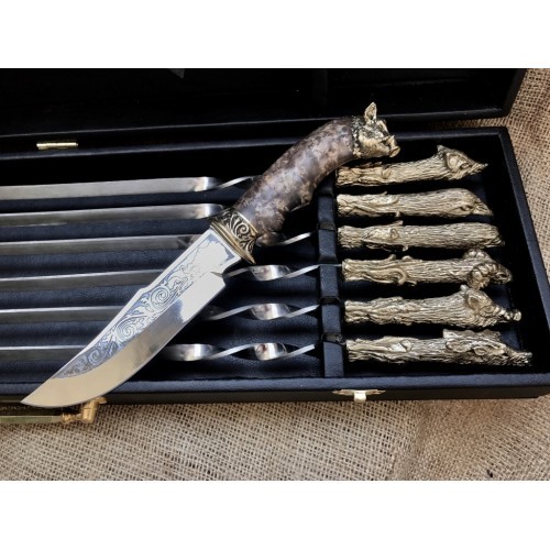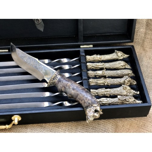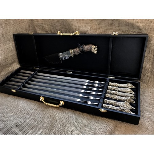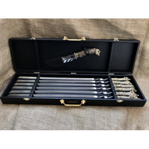 Набор шампуров Охотничий трофей с ножом в кейсе.