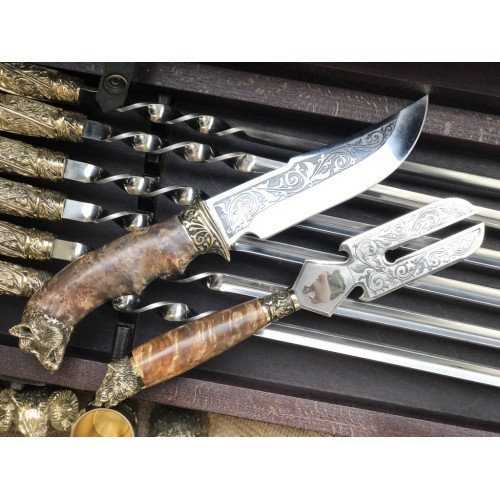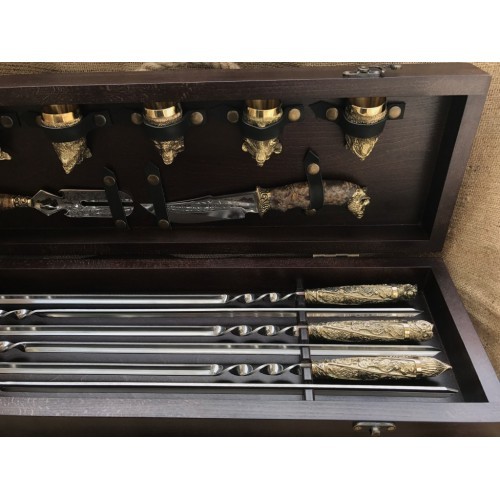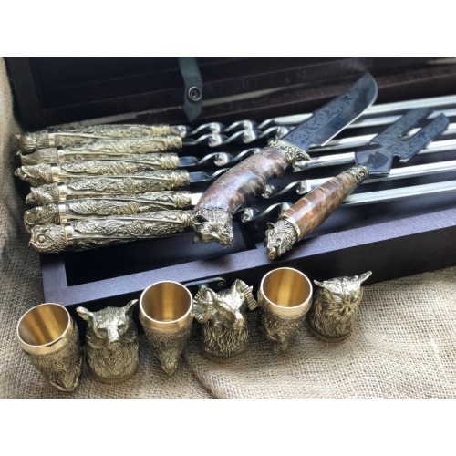 Эксклюзивный набор Дикие звери для шашлыка. Шампура+рюмки.