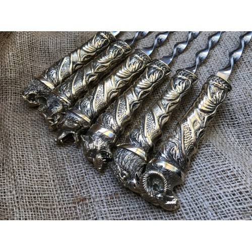 Шампура: 6 штук, твердая пищевая нержавеющая сталь толщиной 3мм. Г-образные.