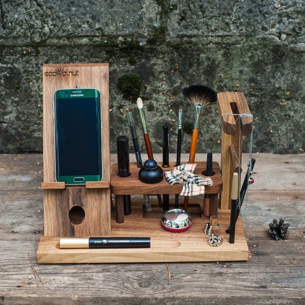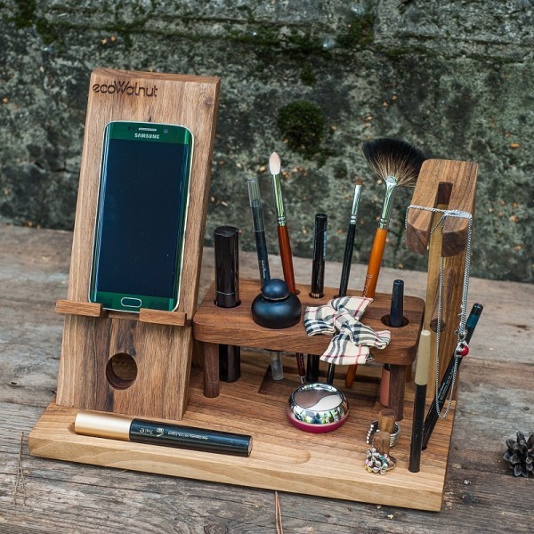 Необходимый аксессуар для представительниц прекрасного пола, с такой подставкой всё необходимое можно держать под рукой. Органайзер выполнен из натурального дерева и имеет оригинальный дизайн, столь оригинальный аксессуар можно подарить и маме и коллеге и близкой подруге.
