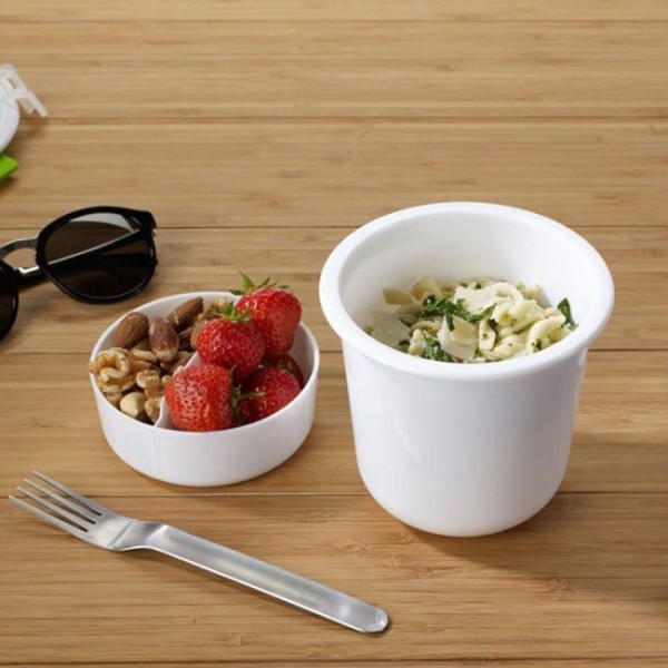 Контейнер для супа от компании Black and Blum выполнен в необычной круглой форме, которая с легкостью влезет в сумку любого размера. Несмотря на то, что изначально контейнер предназначен для супа, туда можно поместить спагетти, например, или что-то подобное –все равно будет удобно! Тем более, что прямо под крышкой находится небольшой контейнер, в который можно положить немного овощей. Купить такой круглый ланч бокс и положить туда перекус ребенку в школу – отличная идея!