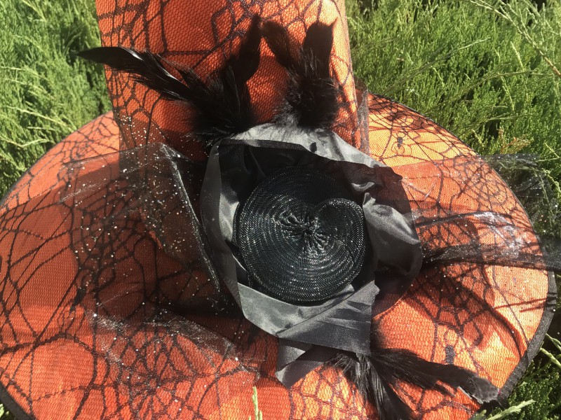Комментарии к Колпак ведьмочки с перьями и розой оранжевая