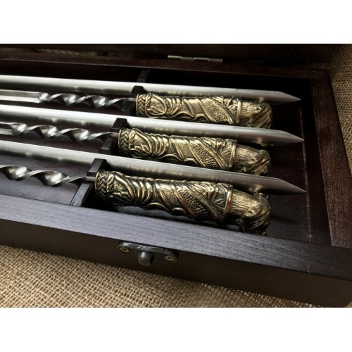 Комплект шампуров Верный друг в кейсе из натурального дерева.