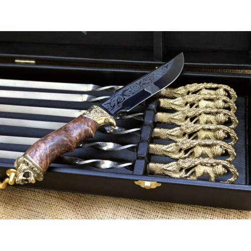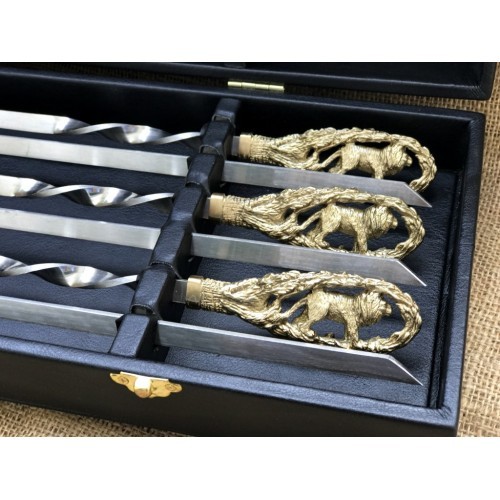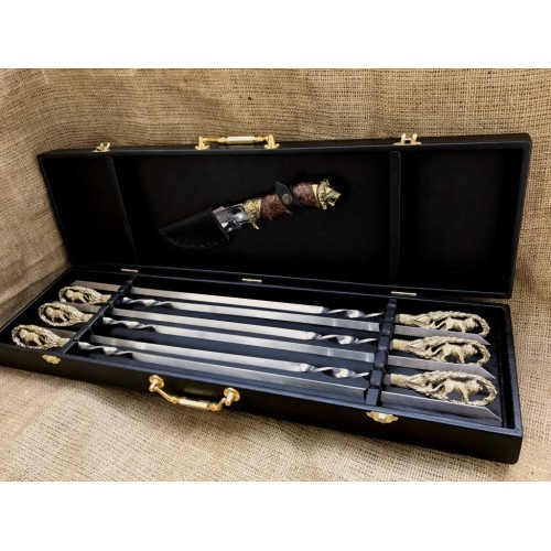 Характеристики товара Набор шампуров Лев с ножом в кейсе