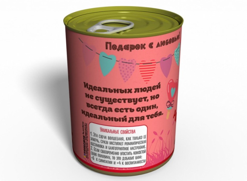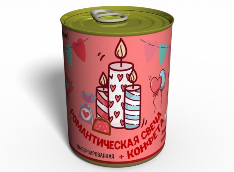 Характеристики товара Консервированная Романтическая Свеча и Конфета для 14 февраля