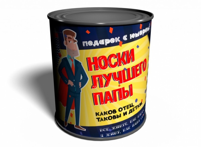 Консервированные носки лучшего папы - отличная идея для оригинального подарка, который вызовет удивление, ведь это действительно необычный мужской подарок. Такой сувенир подойдет практически всем мужчинам, главное, чтобы размер ноги был от 41 до 45.