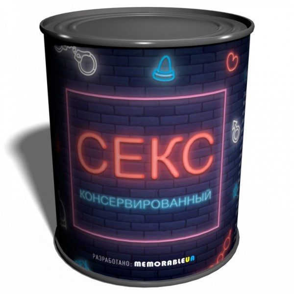 Консервированный Секс – это очень оригинальный подарок с юмором. Таким подарком можно побаловать вашу половинку. Внутри банки находится презерватив и мочалка, а на этикетке инструкция по применению.