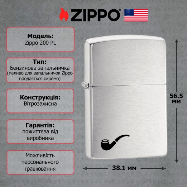 Характеристики товара Зажигалка Zippo для трубок № 200PL