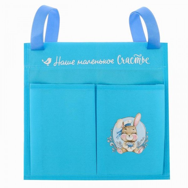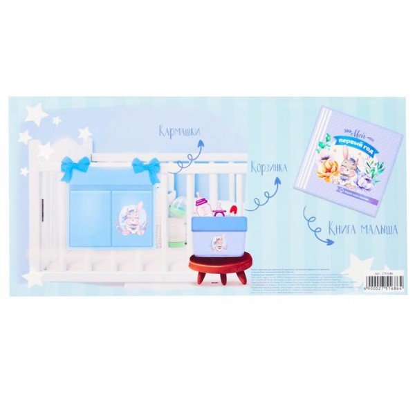 Кармашек на детскую кроватку с двумя отделениями, настольная корзинка и первая книга малыша.