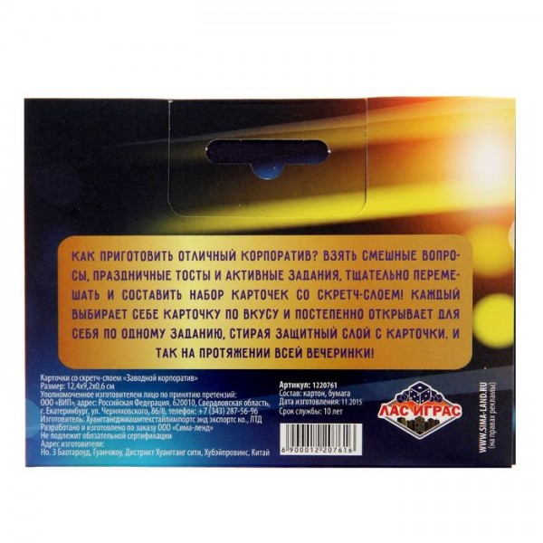 Характеристики товара Игра на праздник со скретч-слоем Заводной корпоратив