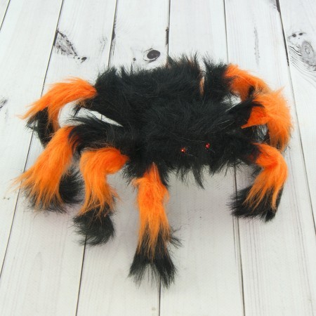 Паук из меха 30см черный с оранжевым