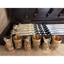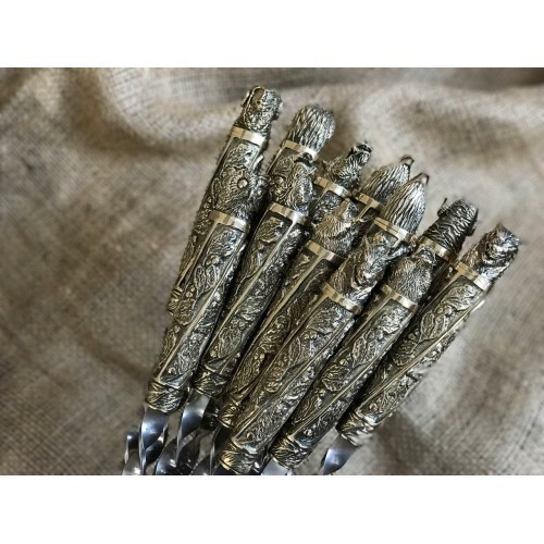 Шампура подарочные "Дюжина" в колчане из натуральной кожи это настоящие произведение искусства. Рукоять эксклюзивных шампуров изготовлена из бронзы, в процессе использования рукоять практически не нагревается. Шампуры ручной работы будут отличным оригинальным подарком!