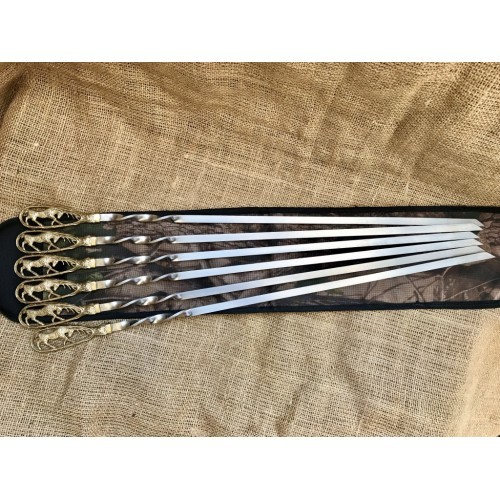 Набор шампуров "Лось" 6 шт. Ручки - художественное литье из бронзы, (при использовании РУЧКА НЕ НАГРЕВАЕТСЯ), покрытые теплостойким лаком,