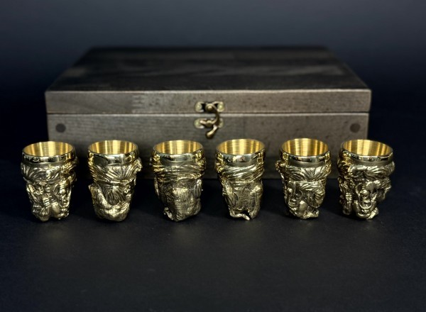 1. Рюмка Козак: художественное литье из бронзы, внутри покрытые пищевым булатом. Высота 70 мм, ширина 40 мм, объем 30 мл, вес 220 грамм.