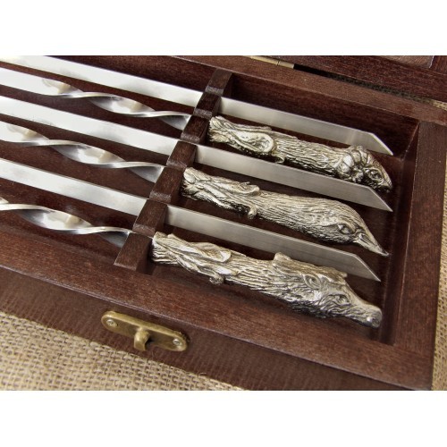 Комплект шампуров "Охотничий трофей " в кейсе из натурального дерева