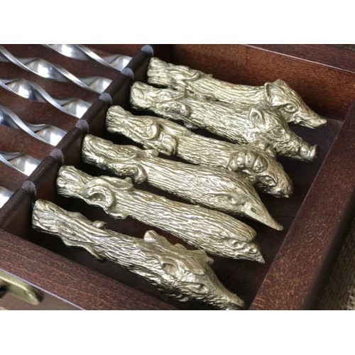 Комплект шампуров "Охотничий трофей " с разборным мангалом в кейсе из натурального дерева смело можно отнести к категории элитных подарков. В подарочном кейсе из твердых пород дерева вы найдете все необходимое для удобного приготовления пищи на открытом огне так как разборной мангал входит в комплект шампуров.