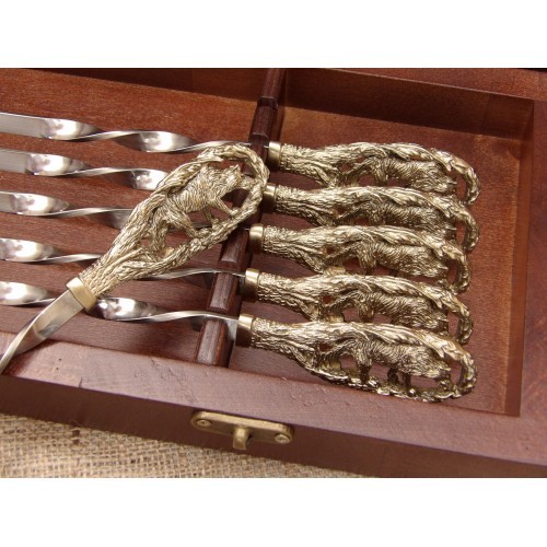 Комплект шампуров "Волчья стая" в кейсе из натурального дерева