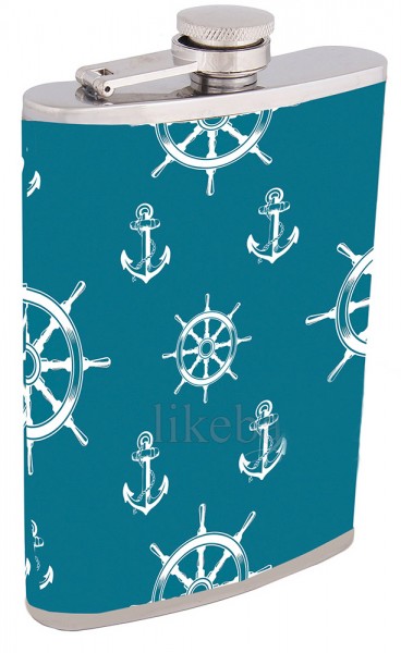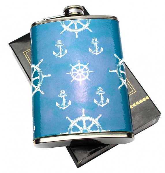 Фляга отличная из нержавеющей стали "Штурвал и якоря"