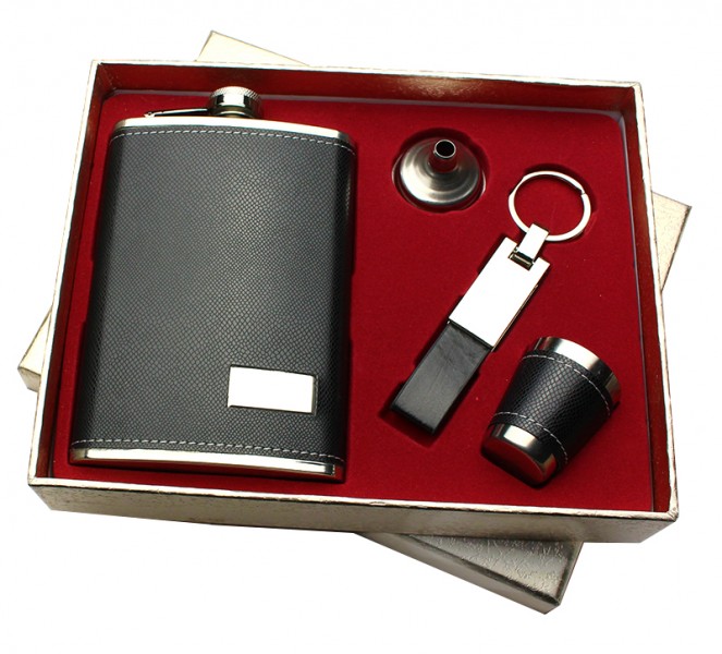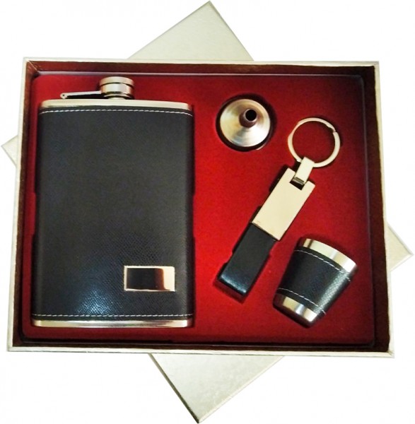 Подарочный набор фляга 4 в 1 практичный подарок для любимого мужчины. В набор входит: фляга, стопка, лейка и брелок.