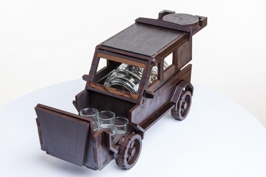Мини бар Гелик послужит отличным подарком для мужа, сотрудника, руководителя. Такой бар не займет много места и отлично впишется в любой интерьер. В гелике спрятана бочка на 500 мл и шесть рюмок на 30 мл.