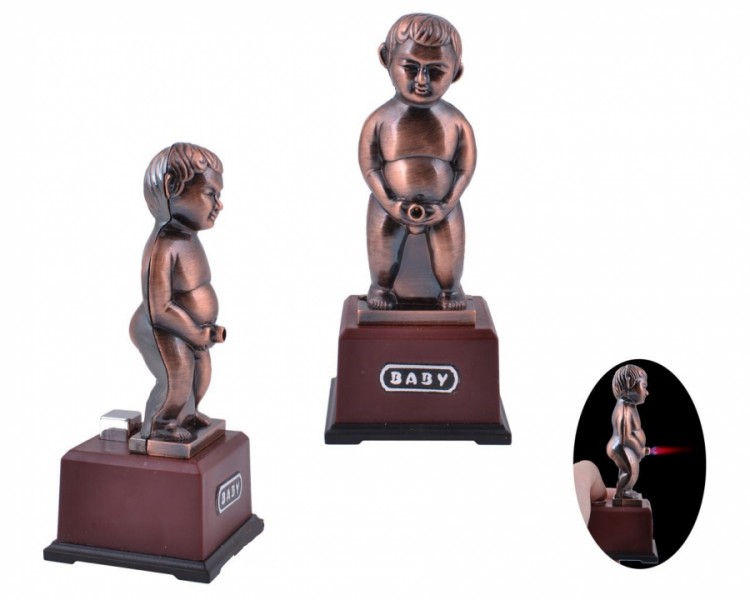 Продается газовая зажигалка "Писающий мальчик", сделана по типажу знаменитой скульптуры,только в нашем случае мальчик не "писает", а подает огонь через то самое место. Данная модель изготовлена из пластика, очень похожего внешне на медь, а также подставки для устойчивости. Чтобы раздобыть огонь, надо нажать на кнопку сверху подставки, получим пламя с турбонаддувом. Очень легко можно заправлять газом и регулировать силу огня, подставку можно раскрутить для мелкого ремонта при необходимости. Отличный и оригинальный подарок на все случаи жизни.