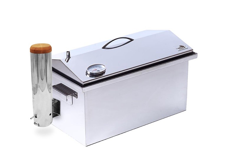 Коптильня из нержавеющей стали с термометром. Копчение под открытым небом и в помещении. Это удобное устройство может обдавать продукты горячим ароматным дымом и на свежем воздухе, и в стенах зданий. Обретая волшебный вкус и чарующий аромат, продукты в процессе копчения очищаются от вредных микроорганизмов и сохраняют жиры в неизмененном виде.