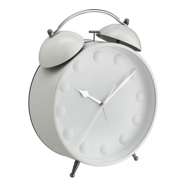 Большая часть ностальгии не только для спальни. Этот белый будильник с двойным колокольчиком в формате XXL, несомненно, привлекает внимание и может быть установлен на стене. Классический двойной колокольчик заставляет вас встать с постели испытанным и проверенным способом. Встроенный часовой механизм "Sweep" работает плавно и очень тихо и не мешает во время сна. Металлический корпус и стеклянная крышка подчеркивают высокое качество этого будильника.