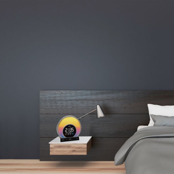 Будильник SOLUNA обладает множеством полезных функций. Начните утро с расслабленного пробуждения. Постепенно осветляющий свет мягко выводит вас из сна. Дисплей можно регулировать в четырех уровнях яркости. Создайте приятную атмосферу в гостиной или спальне со светом настроения. Вы можете выбрать один из 5 различных режимов света настроения с выбором из 20 цветов с 5 уровнями яркости. Лампа затемняется, и она также хороша как ночной светильник. Кроме того, вы можете видеть текущую дату и день недели, написанные полностью (по выбору на 4 языках) каждый день. Вы можете легко следить за температурой и влажностью и регулировать ее с помощью целенаправленного обогрева и вентиляции. Это поможет вам создать приятную и здоровую среду обитания и даже сэкономить на отоплении. Особой функцией является встроенная функция зарядки для устройств с USB-портом, которая позволяет заряжать смартфон в течение ночи.