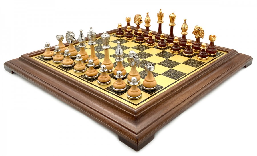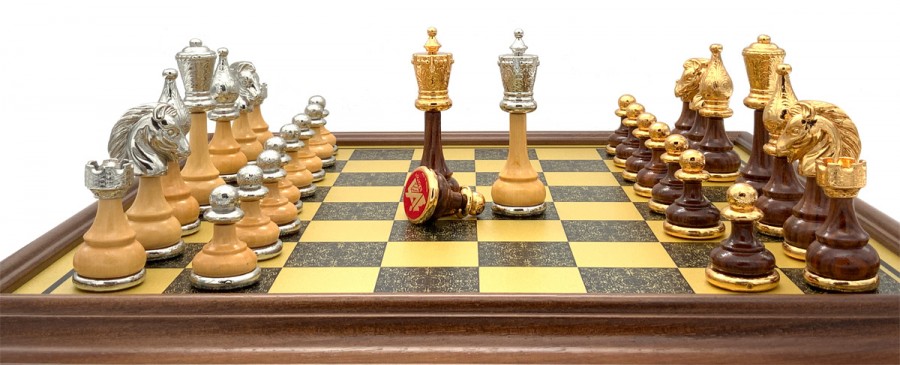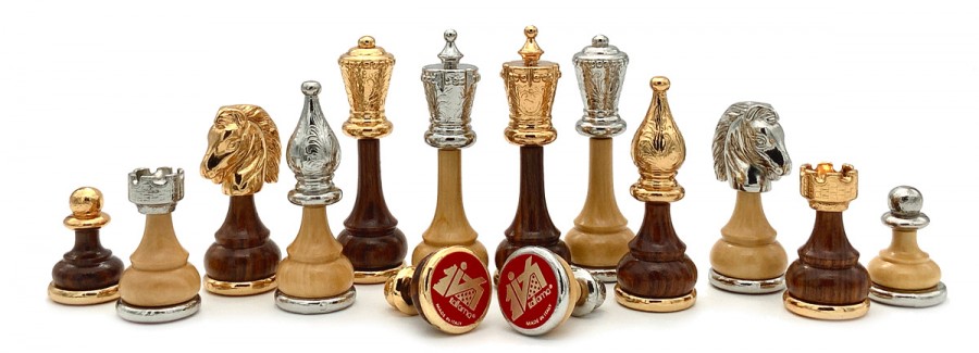 Шахматы всемирно известного итальянского бренда Italfama. Доска изготовлена из дерева. Фигурки коллекции Staunton изготовлены из дерева, цинка + розовая позолота 24К и серебро 925 пробы.