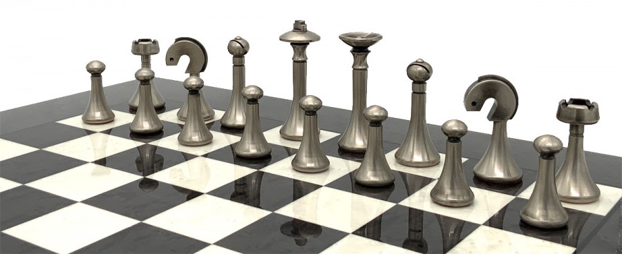 Итальянские мастера ,разрабатывая эту модель шахмат решили отойти от классики и создали нечто уникальное. За основу дизайна взято модернистское движение начала двадцатого века,сдержанный характер дополняют фигурки сделанные из латуни. Благодаря эргономичному дизайну ,шахматы имеют хороший вес и сбалансированы в руке игрока. На обратной стороне фигурок-красные фетровые накладки,с фирменным логотипом,благодаря которым игровая поверхность защищена от царапин и сколов во время игры.