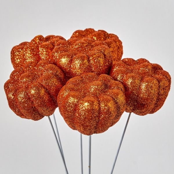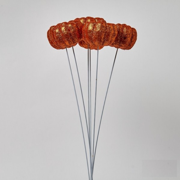 Декоративные пики Тыква. В наборе 6 штук. Длина пики 34 см, диаметр тыквы 5 см.