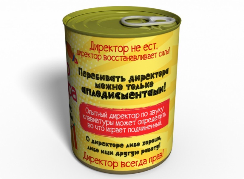 Если у вас лучший директор, то ему обязательно надо подарить Консервированные Носки Лучшего Директора. Такой подарок идеально подойдет для празднования корпоративных мероприятий, на День рождения директора или же просто так.